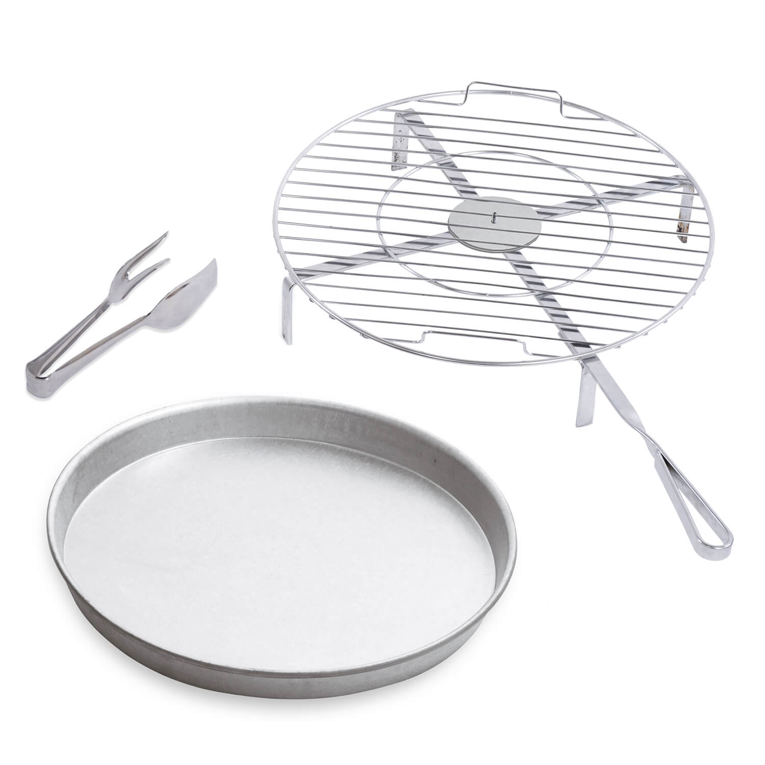 BANDEJA: Soporte para las brasas, con un tamaño compatible al de la parrilla para proteger la superficie de cocción, ideal para derretir el exceso de grasa durante la cocción.